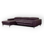 Recliner sofa in leather/fabric upholstered integrated with steel structure.